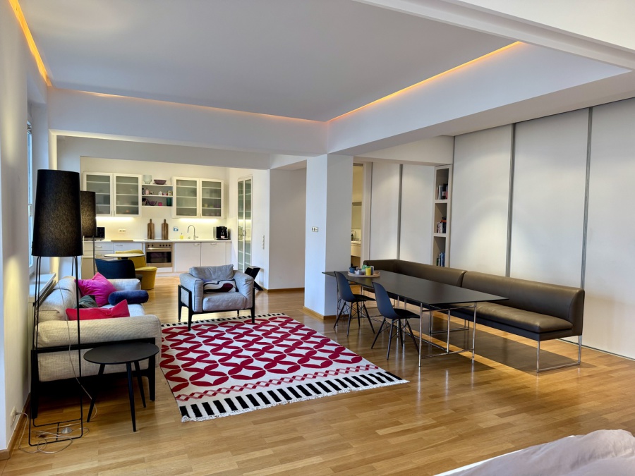 Die ca. 80 m² große Open-Space-Wohnung bietet durch ihre bisherige Nutzung durch nur eine Person einen gepflegten und ruhigen Ausgangszustand. Die großzügige Grundfläche ist ideal für eine Person, lässt sich aber auch hervorragend von einem Paar nutzen. Flexibilität bietet die Option, durch eine Leichtbauwand problemlos einen zusätzlichen Raum zu schaffen – mit dem besonderen Vorteil, dass auch nach einer Teilung beide Zimmer ihren direkten Zugang zu Balkon und Tageslicht behalten. So entsteht maximaler Komfort ohne Einschränkungen. Eine moderne Einbauküche mit allen Elektrogeräten, großer Fahrstuhl, diverse Einbauschränke, Garage, Parkett, 2 Balkone